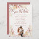 Stunning, modern Save The Date invitation featuring pampas grass boho elements with romantic couple in soft blush, terracotta & white rustic hues. Customize with your own details by using the text templates.