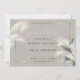 Elegant Mushroom taupe background with gold accents and feathery pampas grass has a touch of colour from smokey teal anthurium leaves on the bottom corner. Modern script calligraphy combined with a minimalist, contemporary style font layout creates an eye catching design. This is part of a coordinated wedding ensemble with matching wedding accessories. Original artwork by ©WhimsicalArtwork™ created specifically for the BarefootBride™