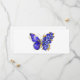 Bijoux, bleu, saphir, papillon aux fleurs pétillantes avec aile décorée de bleu, fleurs précieuses avec feuilles d'or sur arrière - plan blanc.