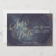 Glamor lettrage à main en or design de calligraphie et points d'or confetti sur bleu marine sombre nuit aquarelle arrière - plan, effet de parties scintillant d'or faux métallique, moderne, chic, élégant et classe, parfait pour mariage vintage ou mariage d'hiver en soirée. Personnalisez votre propre enregistrement de la carte de date pour votre jeu de faire-part de mariage. Voir toutes les pièces correspondantes dans cette collection de calligraphie de parties scintillant dorée Glam night ci-dessous.