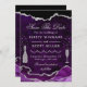 Parties scintillant moderne violet et argent Faux Agate et marbre design avec bouteille de champagne argent et verre de diamant clipart