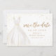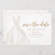 Elégante douche nuptiale enregistrer les cartes de date caractéristiques aquarelle robe blanche mariage avec parties scintillant brillant faux or enregistrer le script de date.