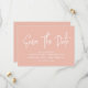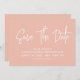 La calligraphie moderne enregistre la date dans pastel peach avec un code QR numérisable pour un site Web ou les coordonnées sur le dos.