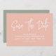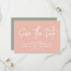 La calligraphie moderne sauve la date en vert pêche et sauge avec un code QR numérisable pour un site Web ou les informations de contact sur le dos.