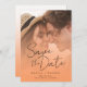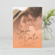 Save The Date Peach Orange Fuzz Photo Elegant Script Mariage