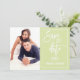 Mariage Sauvegardez le carte photo de date avec un script d'écriture manuscrite cursive et un jeu de couleurs tendance personnalisable selon vos spécifications d'événement. Un exemple d'image a été utilisé avec autorisation.