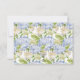 Ce design présente des fleurs d'hydrangée bleu et blanc à l'aquarelle, avec un cadre mince de permule autour d'un centre blanc. L'arrière est disponible soit dans un design tout-en-un des hydrangées, soit dans un bleu périwinkle solide. Cette carte fait partie de la suite de cartes Periwinkle Blue & White Hydrangea Flowers Mariage Suite de cartes créées par Simply Farmhouse Press.