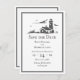 Simple Lighthouse and Boat Nautical Seaside Beach Enregistrer la date Mariage Faire-part en gris et blanc. ^