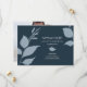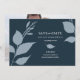Cette simple mais élégante sauvegarde la date dispose de feuilles botaniques modernes en bleu poussiéreux. Utilisez les champs modèle pour mettre à jour vos détails en blanc sur un arrière - plan bleu minuit. Changez la couleur des feuilles et des arrière - plans pour répondre à vos besoins. La carte s'inverse pour inclure la photo de votre couple. Pour voir l'ensemble de la papeterie mariage bleu marine, visitez www.zazzle.com/dotellabelle