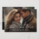 This design features a save the date, weddings card, with a simple, elegant, classy style simple typography, calligraphy script, and a classic, photo template, with a scannable QR code template.