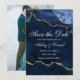Save The Date Photo de géode d'agate marbrée bleu or aquarelle