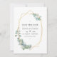 Invitation de mariage photo avec cadre géométrique doré et eucalyptus forestier aquarelle argentée personnalisable selon les spécificités de votre événement. Idéal pour n'importe quel thème ou mariage champêtre.
