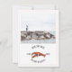 Une invitation de mariage rustique nautique avec une illustration d'un homard rouge et une photo personnalisée sur le devant. Le dos présente un design inspiré de l'aquarelle de couleur chambray.
