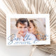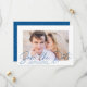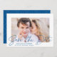 Annoncez votre date mariage dans le style avec notre photo moderne tendance enregistrer les cartes de date. Le design affiche votre photo fiançailles avec "Save the Date" dans une superposition manuscrite bleue. Personnalisez l'avant de sauvegarder le carte photo de date en ajoutant vos noms, votre date de mariage et votre emplacement de mariage. Le simple enregistrement du carte photo de date revient à un motif géométrique pointillé bleu et blanc.