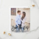 Utilisez notre photo de portrait enregistrer les cartes de date avec un script de brosse moderne pour informer vos invités de bloquer votre date de mariage à l'avance. Astuce : si vous devez modifier le libellé de la police de script, vous pouvez aller à la section "Personnaliser ce Modèle" puis cliquer sur "Cliquez pour Customiser plus loin" en bas. Vous pouvez supprimer n'importe laquelle des images texte dont vous avez besoin et ajouter votre propre texte à sa place avec le bouton "Ajouter du texte". N'oubliez pas de consulter notre grande sélection de photos enregistrer les cartes de date, les cartes postales et les magnets en parcourant notre collection Photo Save the Date!