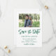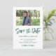 Une photo au format paysage sur votre enregistrement des dates. La couleur verte du chasseur de la police de caractères du script "Save the Date" de style manuel et d'autres textes peuvent être customisés. Texte vert foncé contre blanc.