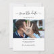 Photo de script moderne Enregistrer la carte d'annonce Date. Ajoutez vos noms et votre photo en cliquant sur le bouton "Personnaliser". Il est préférable d'enregistrer les cartes de dates pour informer vos amis et votre famille de votre prochain mariage