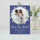 This Save The Date Photo Engagement Card is designed with your favorite couple's photo surrounded with a wreath of gold colored hearts. The Front Text Includes: Save The Date, the Bride and Groom's Names, the Wedding Date and Details To Follow. To personalize, simply insert your favorite image into our template. Ensure the photo is centered. The wreath will remain on top. Next, insert your text details into our easy template, replacing the sample. Should you prefer, background colors can be changed using our easy Color Picker Tool.