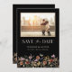 Ce mariage élégant et élégant sauve la date présente de magnifiques fleurs sauvages d'aquarelle peints à la main, disposés comme un joli bouquet parfait pour le printemps, l'été ou les mariages de automne. Trouvez les objets correspondants dans la collection de Mariages Fleurs sauvages Moody Black Boho.