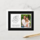 Add your favourite engagement picture and announce your upcoming wedding date with our classic black and white Save The Date wedding announcement postcard! Design features chic calligraphy and script in charcoal grey on a crisp white background placed in a trendy modern black frame accented by a delicate white border. Personalize wedding design on the front with your photo, first names, location and date in charcoal lettering and script. The back of the card matches in white with charcoal script and has additional details including your return address and website or other custom text. For best results, crop photo with a photo editor first and replace template text with your details then follow instructions in the template area. If you need assistance with this or any of our designs e-mail us at invitationsuites@gmail.com. Custom requests gladly accepted.