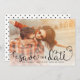 Cette simple photo sauve les dates dispose de charmant script de calligraphie écrit à la main. Revêtu sur votre photo avec un fond blanc en bas (vous pouvez supprimer ceci si vous n'en avez pas besoin via l'outil de personnaliser/personnalisation de Zazzle). Un arrière - plan à pois mignon finit le design !