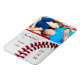 Save the date with a baseball theme in mind! Upper template photo and text templates provided on this beautiful close-up of a baseball. Save the date text surrounded by gold crown at top, blue green laurels on each side and baseball underneath.