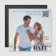 This modern magnetic save the date showcases your photo with elegant typography and calligraphy script for a timeless wedding design. The simple magnet format makes it easy for guests to keep on display, while the QR code links directly to your wedding website for quick access to all your event details. A stylish and practical way to announce your big day with modern elegance.