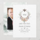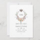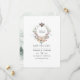 Faire-part de mariage à l'aquarelle avec un blason fantaisiste sur le thème de la forêt et des bois personnalisable avec les initiales du couple.