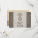 Personalize pineapple hearts save the date cards overlaying tropical greenery in brown tones Ideal for a tropical beach wedding.
