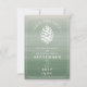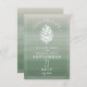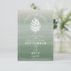 Un mariage élégant et rustique sauve l'invitation de la date avec une illustration d'un cône de pin blanc sur un arrière - plan vert d'ombre couleur eau inspiré.