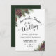 Cette belle carte de date permettra à vos amis et à votre famille de connaître votre prochain mariage. Il présente un design boho chic rustique avec une élégante calligraphie script et des pinecones aquarelles peintes à la main et des branches de pin. Il y a de l'espace pour vos noms, la date du mariage et l'emplacement. L'arrière comprend un ensemble rustique de pinecones et branches nouées avec un arc blanc sur un arrière - plan vert de forêt marbré.
