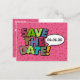Featuring love hearts confetti, a fun, cool and trendy comic book inspired save the date card that puts the wham, zap, pow into your wedding date announcement. The reverse features your additional event information. Designed by Thisisnotme©