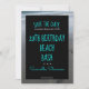 Un bain d'anniversaire de plage enregistrer la date et l'invitation combinaison avec un arrière - plan noir sur une plage de sable. Aqua et typographie blanche que vous pouvez utiliser pour n'importe quel bain d'anniversaire de plage année. Il vous suffit d'utiliser la fonction "personnaliser ce modèle" pour modifier le texte à l'avant et à l'arrière pour convenir à votre anniversaire de plage. Plusieurs styles de papier disponibles
