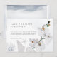 Save The Date Plage d'orchidée blanche de coquillages bleu outre