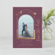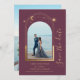 Mystical Plum Gold Sun Moon Stars Space Save The Dates dispose d'un cadre de soleil doré, de lune et d'étoiles sur un arrière - plan de prune. A l'intérieur est votre photo préférée et votre personnalisation enregistrer les informations de date. Ajoutez une photo supplémentaire au verso. Personnalisez en modifiant le texte dans les zones de texte. Conçu pour vous par ©2022 Evco Studio www.zazzle.com/store/evcostudio