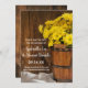 Annoncez votre prochaine cérémonie de mariage avec le charmant seau en bois et les marguerites jaunes Country Barn Wedding Enregistrer la date Annonces. Ce mariage de ranch personnalisé informel mais élégant garde le faire-part date dispose d'une photographie fleurie numériquement pittoresque d'un seau en bois rempli de fleurs de marguerites jaunes et d'un arrière - plan rustique et patiné en bois de grange brun.