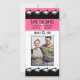 Cette élégante invitation en noir et blanc présente une école de tétras jupes noires. Ajoutez une photo 4 par 6 de vous et de votre bien-aimé pour cette touche spéciale. Besoin d'un dessus différent ? Choisissez une couleur arrière - plan différente avec l'outil personnaliser ! Entièrement personnalisable pour mariages et événements spéciaux de toutes sortes. Maintenant avec enveloppes assorties!