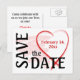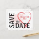 If you need a quick way to notify people of your special event, then this "save the date" postcard is just the thing for you. Bold "save the date" words stacked on the edges of the postcard in uppercase letters get immediate attention, while the brushed red heart leave no doubt about the event. Inside the heart is the date of your event, affording full customization in font and colour. The back of the postcard also affords full customization with the addition of names.