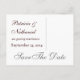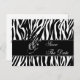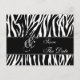 This black and white zebra design with its ribbon trim, monogram and ornate lettering is elegant way to send out your save the date announcements.