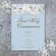 Une élégante première communion sainte sauve la carte de date avec une fleur blanche délicate encadrant vos premiers détails de communion sainte dans une élégante typographie or sur un arrière - plan bleu. Conçu par Thisisnotme©