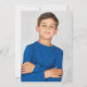 Élégante signature d'or Première Sainte Communion enregistrer l'invitation de date avec un nom de signature de script élégant sur un arrière - plan bleu poussiéreux et photo spéciale au verso. Personnalisez avec vos informations spéciales d'évènement par des lettres chic. Conçu par Thisisnotme©