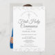 Une élégante Première Sainte Communion sauvez l'invitation de la date avec la délicate poussière d'étoile d'argent. Vous pouvez personnaliser avec vos détails spéciaux de célébration en texte argenté chic et ajouter une photo spéciale au verso. Conçu par Thisisnotme©