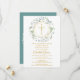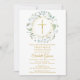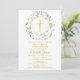 Une guirlande de verdure décorative et une croix dorée surmontent vos informations de save the date de première sainte communion sur ce design élégant.