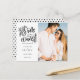 This modern hand script photo save the date card features your special photo and a hand script save the date above your names, date and venue. The reverse features a polka dot pattern which you can customise to your favourite colour or delete and add additional celebration info. Designed by Thisisnotme©