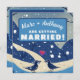 Célébrez votre mariage hivernal de destination avec ce modèle facile à mettre à jour. Remplissez simplement le nom, l'âge, la date, l'heure, le lieu de la fête et toute note de réponse ou autre information. Changez "Marc et Anthony se marient !" en "les Willoughby organisent Noël !". Disponible dans de nombreux modèles pour chaque occasion. Le design charmant présente une variété de bleus, de crèmes et de neige blanche tombant dans un paysage hivernal vallonné avec deux oiseaux amoureux et un cœur rouge rose vif et violet flottant au-dessus de leur regard aimant.