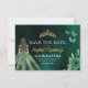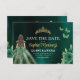 Annoncez votre journée spéciale avec une enchanteresse Emerald Green Princess Quinceañera Enregistrer l'invitation Date. Avec une palette de couleurs vert émeraude et des détails élégants, cette invitation donne le ton d'une célébration royale. Orné de délicats accents propres à une princesse, il saisit parfaitement la magie de votre prochaine quinceañera. Ce design intemporel invitation les invités à marquer leur calendrier et à se préparer à une journée inoubliable remplie de beauté, de joie et de souvenirs chéris pendant que vous fêtez votre 15e anniversaire dans le style.