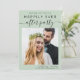 Elopement vert sage moderne et chic ou petit faire-part mariage et réception enregistrer la date avec votre photo de jour de mariage et "Save The Date For Our Happily Ever After Party" dans un mélange de typographie simple et de script tendance avec des swashes. Sous votre photo, ajoutez vos prénoms et la date et l'emplacement de la réception/fête ; au verso, personnalisez votre faire-part mariage et vos informations de réception de manière plus détaillée.