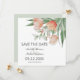 Mariage de printemps enregistrez les cartes de date, avec d'élégantes nuances d'orange de pêche dans les fleurs, tulipes et la verdure botanique. Le design a un mariage moderne sauf le modèle date qui est facilement customisé. Tous les styles, tailles et couleurs de police peuvent être modifiés en cliquant sur le lien personnaliser après personnalisation. .
