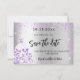 Un fond moderne d'aspect argenté décoré de faux éclats violets, de paillettes et d'une robe. Personnalisez et ajoutez une date et des noms. Le texte : Enregistrez la date est écrit avec un grand style de lettrage à main tendance.