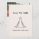 Un Save the Date moderne personnalisé avec photo. Conçu pour le couple moderne recherchant l'élégance et la simplicité. Cette carte magnifiquement conçue présente un look épuré et sophistiqué avec une silhouette de robe de mariée.